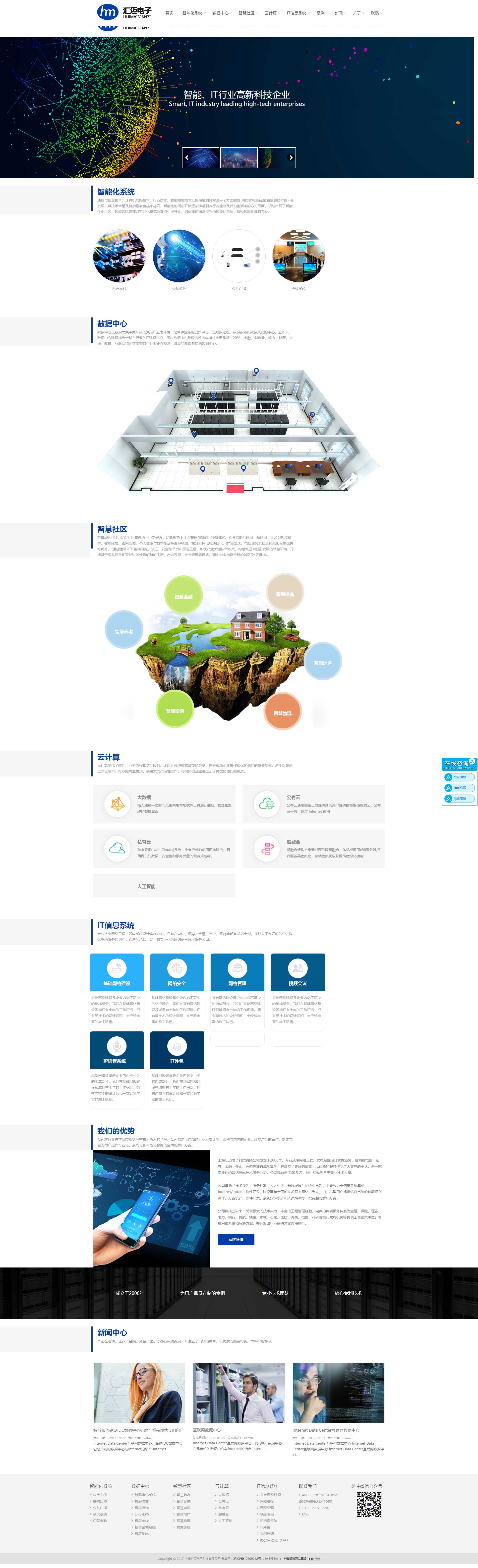上海匯邁電子科技有限公司成立于2008年。專業(yè)從事計(jì)算機(jī)網(wǎng)絡(luò)系統(tǒng)集成、智能化工程、智慧城市、云計(jì)算、大數(shù)據(jù)。